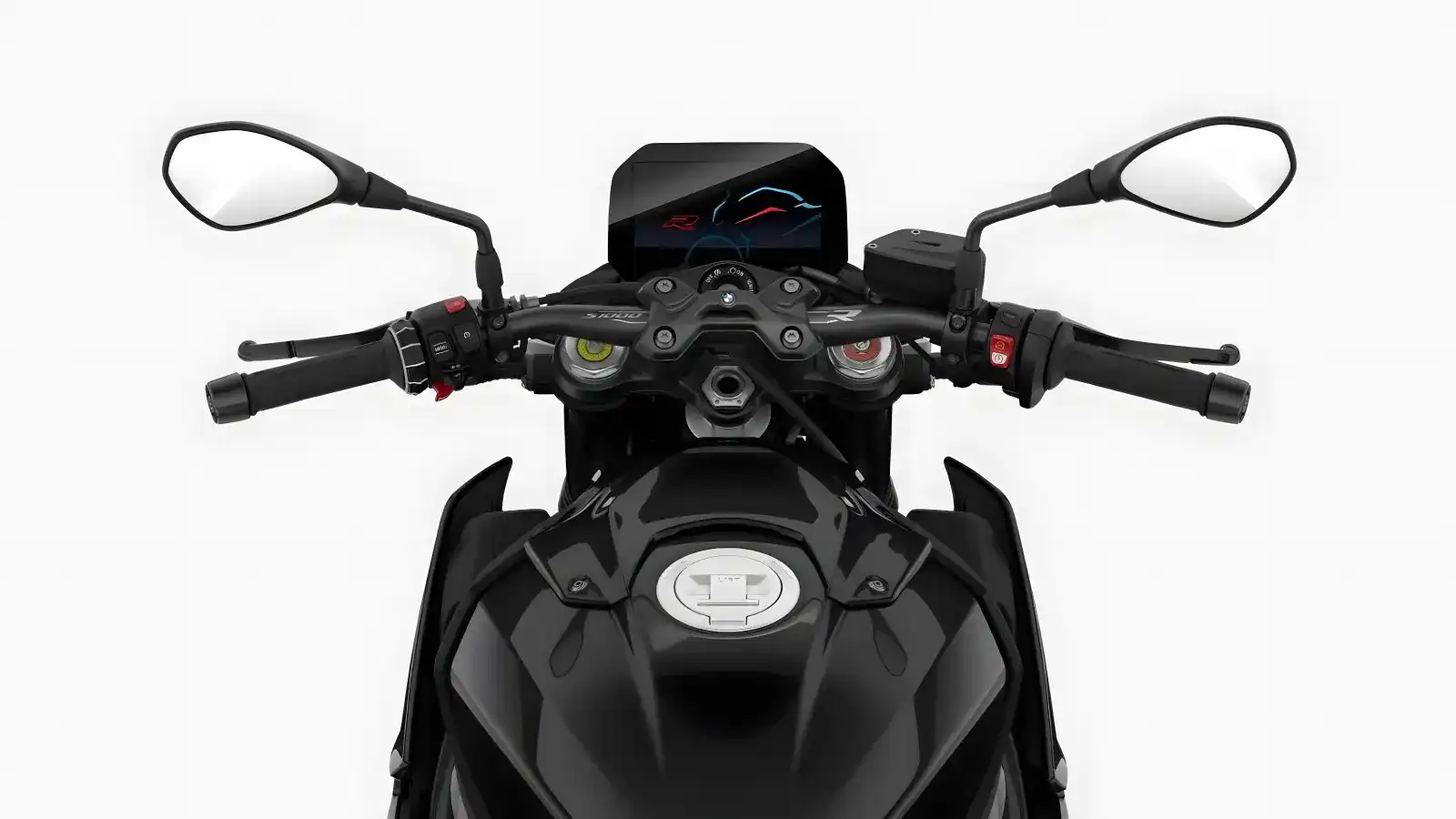 As motos têm farol de fluxo duplo e novo ângulo de acelerador. Isso melhora a direção e o visual. A M 1000 R se sobressai com seus recursos únicos, tornando-a mais especial no mundo das naked bikes.