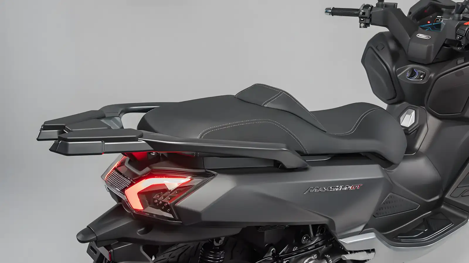 Outro destaque do Maxsym 400 GT é o sistema de iluminação 100% em LED. Isso não só melhora a visibilidade, como também deixa o visual mais moderno e tecnológico, além de aumentar a segurança durante conduções noturnas.