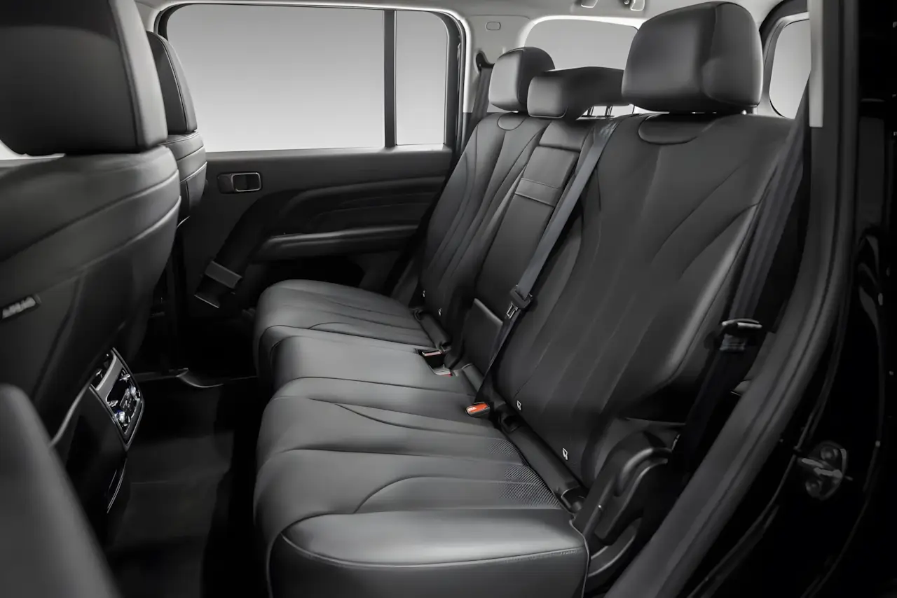 Os bancos dianteiros possuem ajustes elétricos. Eles também têm massagem com 8 modos e 3 níveis de intensidade. A ventilação e o aquecimento também estão presentes nos assentos da frente. Os passageiros da segunda fileira contam com ventilação para seus assentos. Todas as três fileiras de bancos têm portas USB e saídas de ar-condicionado. O teto-solar é panorâmico e os vidros são acústicos.