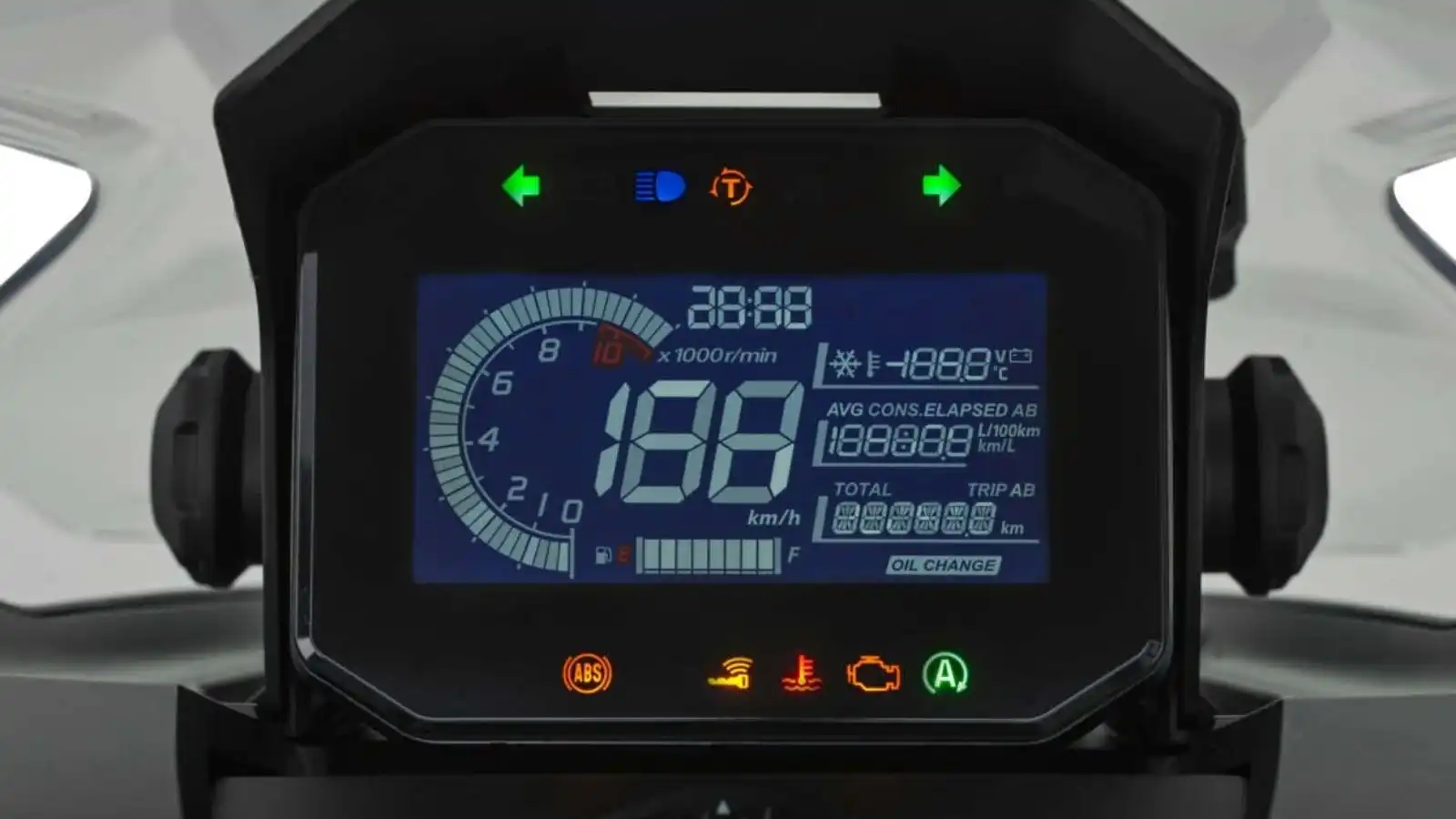 A moto também vem com várias comodidades, como um para-brisa ajustável em altura, sistema de chave inteligente da Honda, alarme antifurto e porta USB para carregamento.