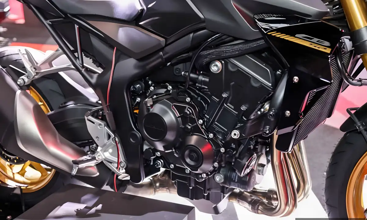 O motor da CB1000 SP é um quatro cilindros em linha herdado da CBR1000RR Fireblade. Apesar de ter sido recalibrado para o uso em rua, ele entrega uma performance que impõe respeito, são 155 cavalos a 11.000 rpm e 107 Nm de torque a 9.000 rpm.