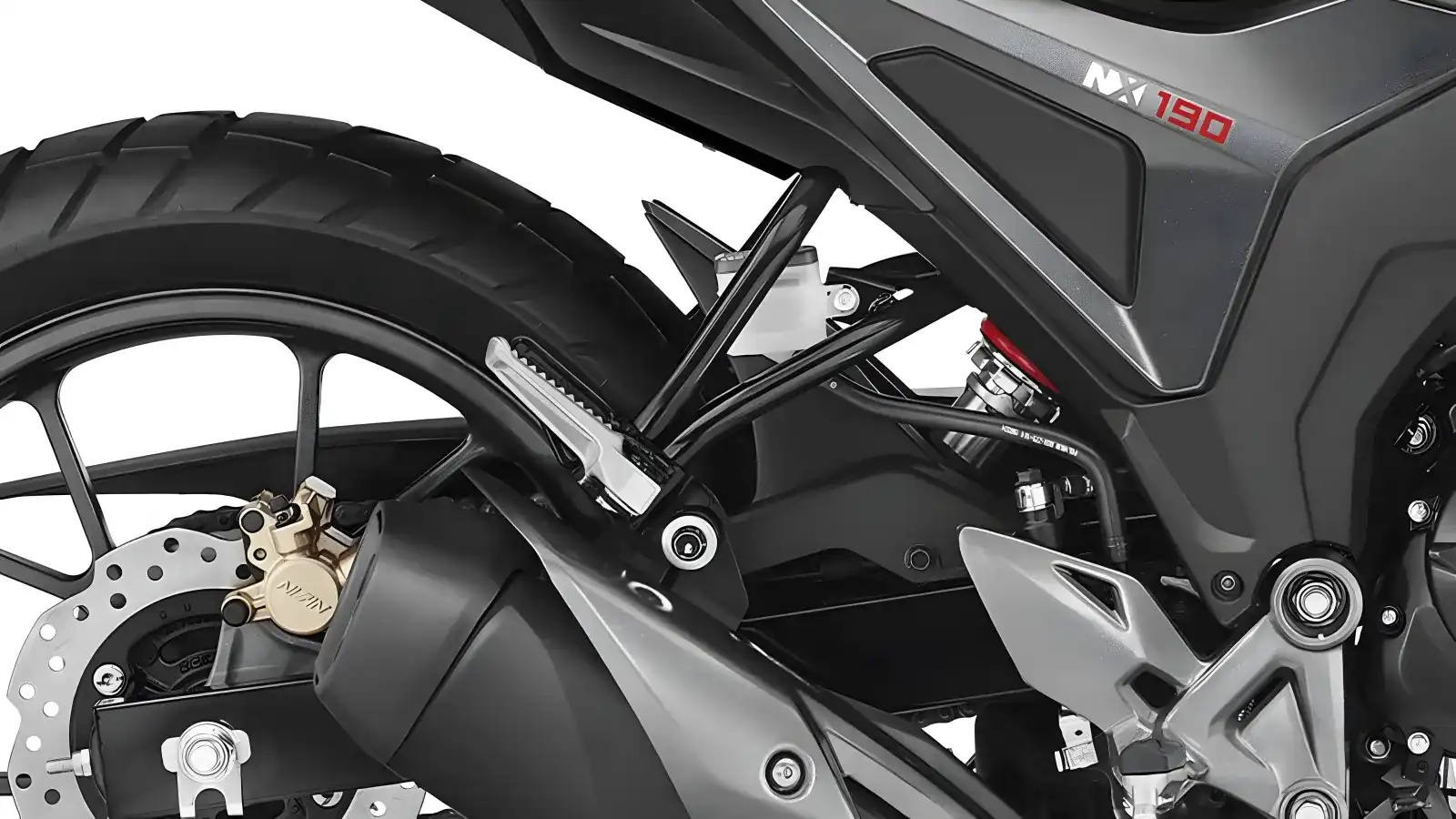 A estrutura da Honda NX 190 2025 é feita com materiais de alta qualidade. Isso resulta em um acabamento premium. O garfo dianteiro invertido (USD) e o amortecedor traseiro tipo mono melhoram a beleza e o desempenho da motocicleta. Eles são ótimos para diferentes tipos de terrenos.