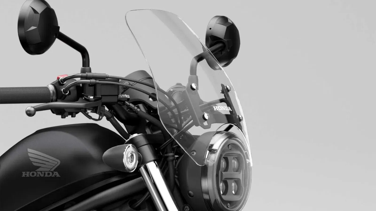 A versão “S” da Honda Rebel 500 2025 tem uma carenagem ao redor do farol. Ela também tem capas de garfo pretas e um assento com costura aparente. Isso dá um visual mais agressivo. Além disso, há muitos acessórios opcionais para personalizar ainda mais.