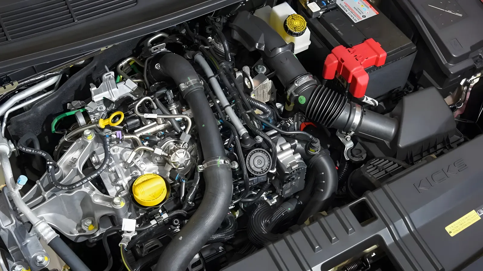 A grande virada acontece sob o capô. O Kicks 2026 abandona o motor aspirado 1.6 e passa a usar o 1.0 turbo flex de três cilindros (codinome 220T), compartilhado com o Renault Kardian: 125 cv e até 22,5 kgfm de torque quando abastecido com etanol.