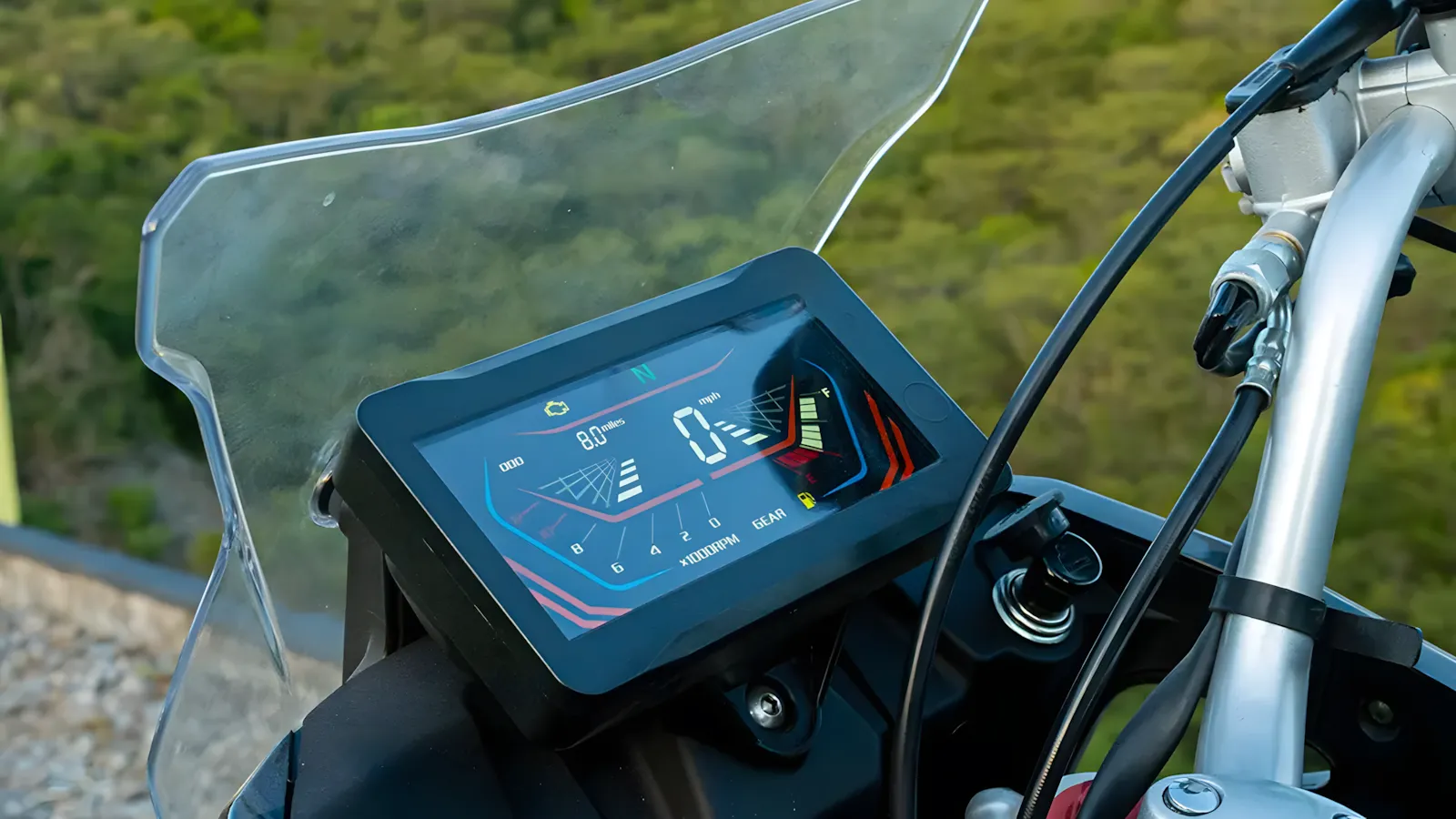 - Painel digital completo com indicador de marcha, conta-giros, velocímetro, odômetro, nível de combustível e luz de ponto morto.