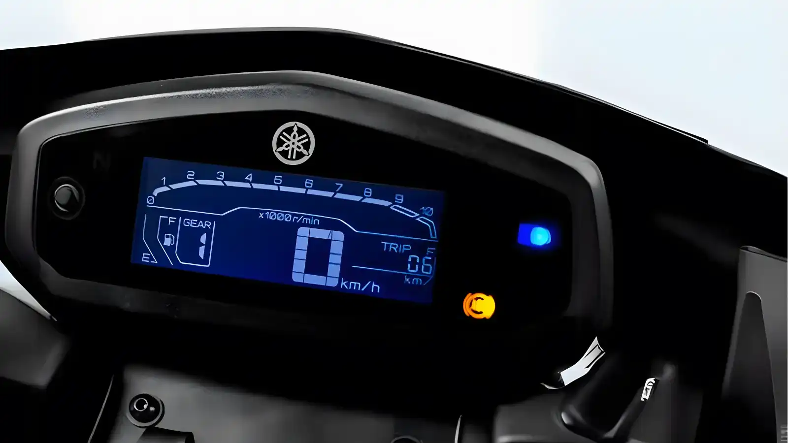 A Crosser 2024 mantém as características da versão anterior, como melhorias na iluminação e tecnologia. Ela tem um painel com indicadores de marcha, nível de combustível e velocímetro.